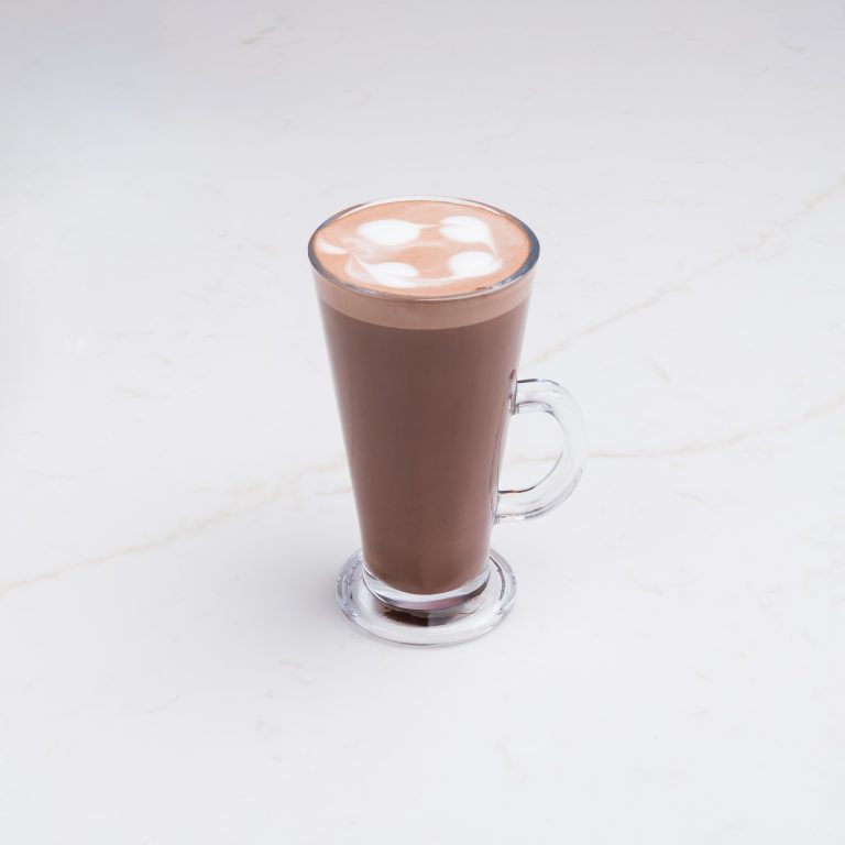 موكا لاتيه فاخرة تجمع بين إسبريسو غني وحليب كريمي، ومسحوق الشوكولاتة الساخن، ورشة من صوص الشوكولاتة، لتقدم مزيجًا فاخرًا من نكهات القهوة والشوكولاتة.