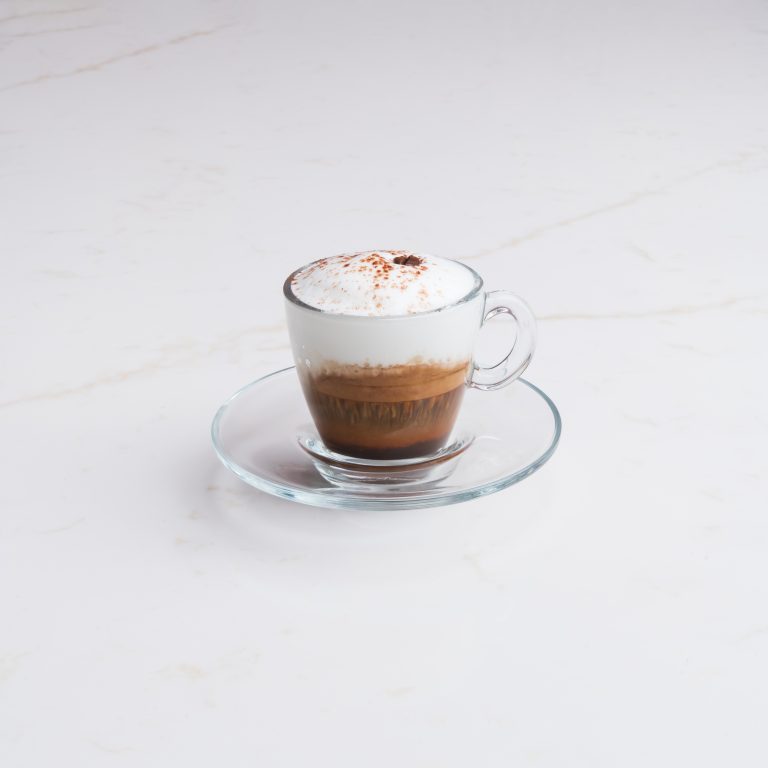 a Spanish-origin coffee drink made by combining equal parts espresso and lightly steamed milk, resulting in a balanced, smooth, and creamy coffee experience.